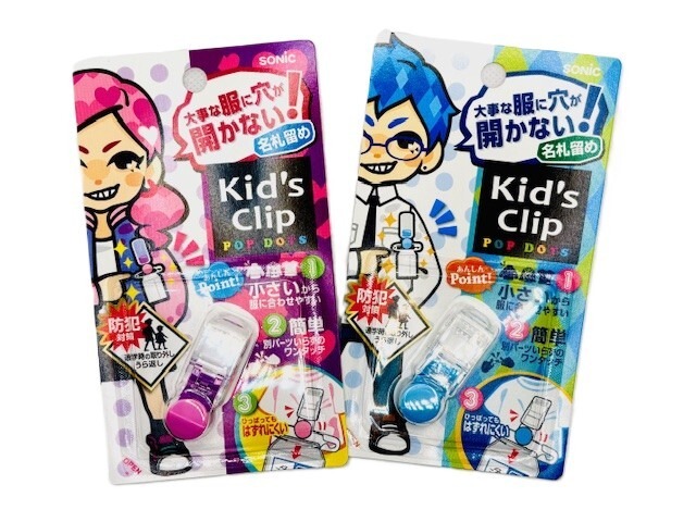 安全ピンで服に穴を開けない名札留めです。 操作がかんたんなので子供が自分で取り付しやすくなっています。 厚手の服にも取り付けられます。薄手の服もOK。 名札をくるっと裏返し、防犯対策で登下校時も安心です。 メーカー:株式会社 ソニック サイズ:商品:14.5×42×10mm パッケージ:140×80×12mm カラー SK-4973-LB JAN:4970116042446 (ライトブルー)      SK-4973-P JAN:4970116042422 (ピンク)